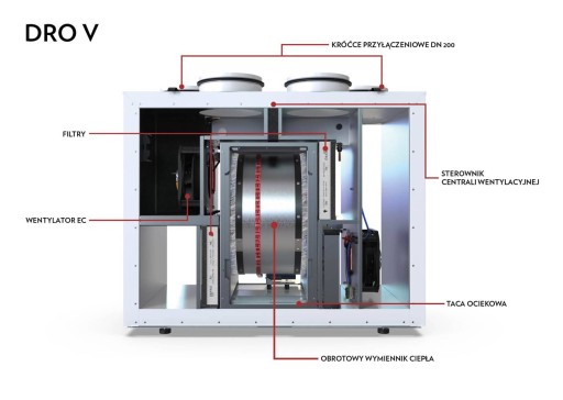- niskoenergetyczne wentylatory EC – gwarantujące niskokosztową, cichą i niezawodną pracę przez długie lata eksploatacji