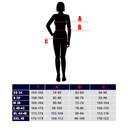 * Wymiary znajdujące się w tabeli są wymiarami osoby.