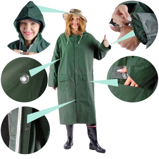 - ✅Lekkie i wytrzymałe - do produkcji użyto wysokiej jakości materiału. Płaszcz nie pochłania wilgoci i pozwala wodzie swododnie spłynąć