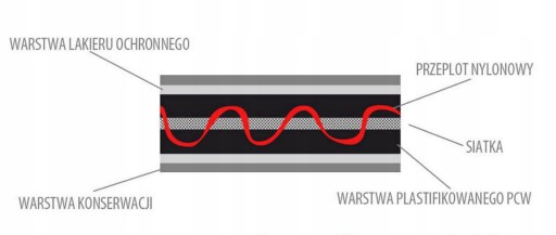 Zastosowany materiał składa się aż z 7 warstw, które gwarantują bardzo wysoką wytrzymałość materiału przy jednoczesnym zapewnieniu odpowiedniej elastyczności.