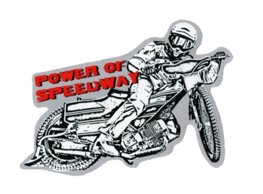 Naklejka dla fanów czarnego sportu w szarej wersji kolorystycznej: Power of speedway. Przyklej ją w wybrane miejsce, by poczuć moc speedwaya!
