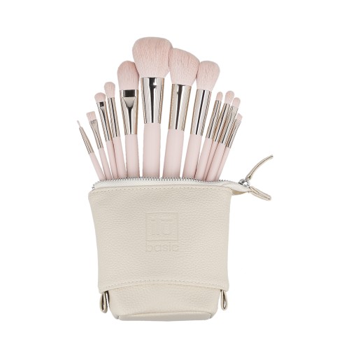 ilū basic Zestaw 12 pędzli do makijażu + etui, Różowy