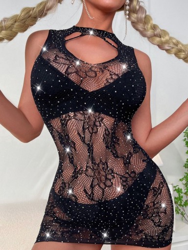 Uwolnij swoje drugie oblicze, w niezwykle drapieżnej sukience wykonanej z wyjątkowo przyjemnego i delikatnego materiału. Seksowne otwory w sukience działają podniecająco na męską wyobraźnie. Partner wprost nie będzie mógł oderwać wzroku od Twojego kusząco odkrytego ciała. Wykonana z miękkiej, prześwitującej siateczki zdobionej cyrkoniami.