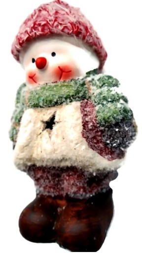 W ośnieżonym ubranku z ciepłą wełnianą czapką.