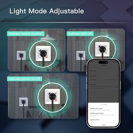 Wybierz spośród WYŁ., WŁ. i Zapamiętaj ostatni status do ustawiania statusu przekaźnika, a także tryb oświetlenia ustawiany według własnych potrzeb; nawet z przełącznikiem blokady rodzicielskiej, aby zapobiec błędnym operacjom ze strony dzieci ze względów bezpieczeństwa; obejmuje pełną 2-letnią gwarancję i 60-dniową gwarancja zwrotu pieniędzy dla pełnej satysfakcji.