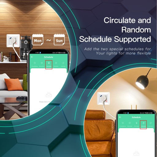 Praca z Alexą, Google Home i niektórymi innymi asystentami głosowymi w celu prostego sterowania głosem, uwolnij ręce w prawdziwym sensie; Dodaj harmonogram z cyrkulacją i losowym opcjonalnie nawet w przypadku elastycznego sterowania timerem, zmniejszając straty energii o około 90 % na oszczędność energii.