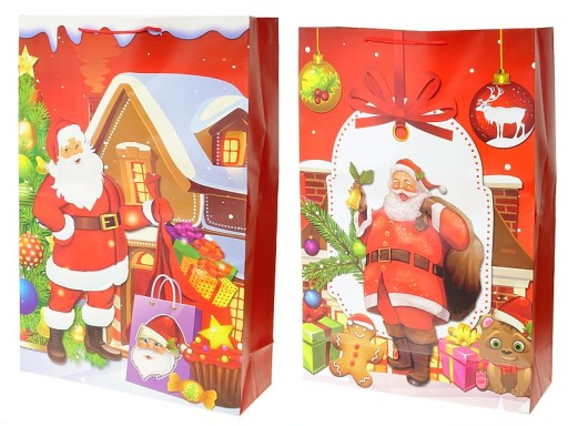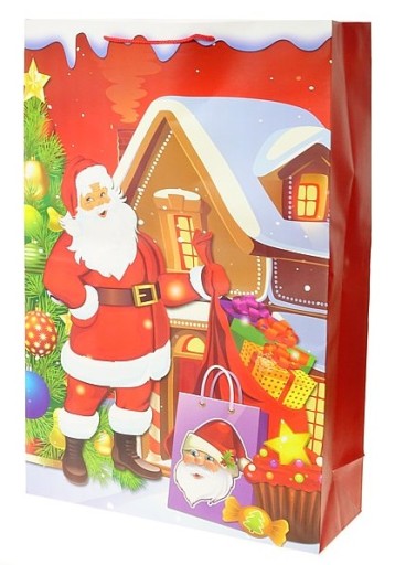 Przedmiotem sprzedaży jest wielka papierowa torebka prezentowa z motywem świątecznym 1szt.