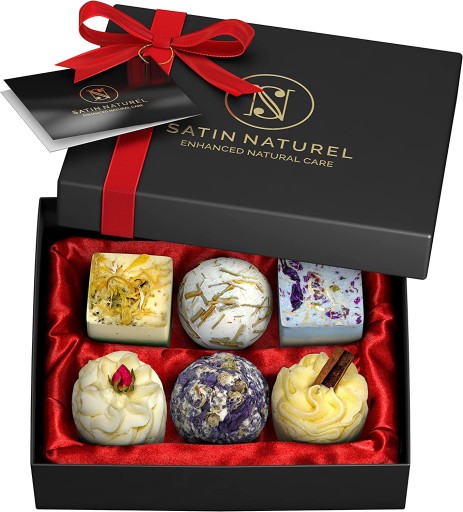 - Ten wysokiej jakości różnorodny zestaw kul kąpielowych jest zapakowany w eleganckie czarne pudełko prezentowe z ręcznie wiązaną satynową kokardką. Zestaw to bardzo wyjątkowy prezent. Dzięki temu adresatowi przypisuje chwilę troski do codziennej rutyny – chwilę, aby się całkowicie skoncentrować na sobie. Pokaż swoje uznanie za pomocą satynowej natury.