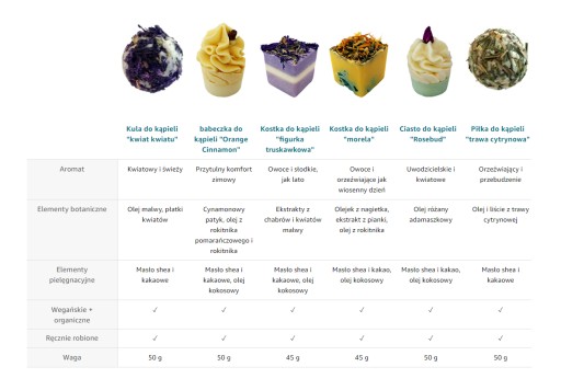 - Każda bombka kąpielowa ma uwodzicielski, zindywidualizowany zapach z prawdziwych płatków kwiatów, ekstraktów botanicznych i olejków eterycznych. Wszystkie pralinki są wykonywane ręcznie w Europie, dzięki czemu każdy z nich jest unikatowym elementem i gwarantuje wyjątkową jakość oraz najwyższą jakość wykonania.