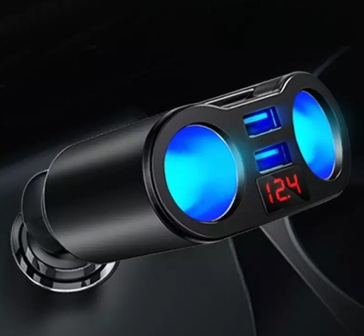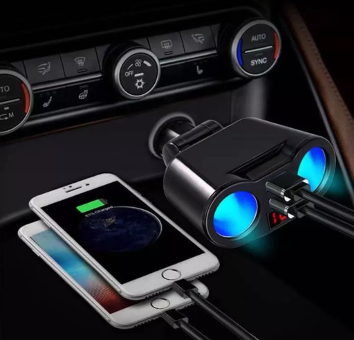 ✅ Rozdzielacz zapalniczki samochodowej 12V na dwa podświetlone gniazda.