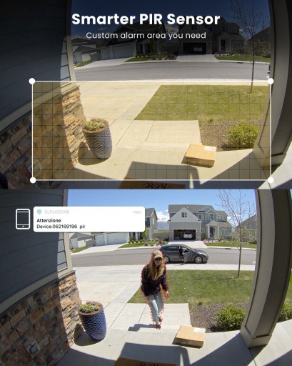 - Otrzymasz powiadomienie o alarmie w czasie rzeczywistym przez telefon w ciągu 3 sekund po wykryciu ruchu, a także możesz wybrać jeden z trzech trybów alarmu: syrena/światło/syrena i alarm świetlny.