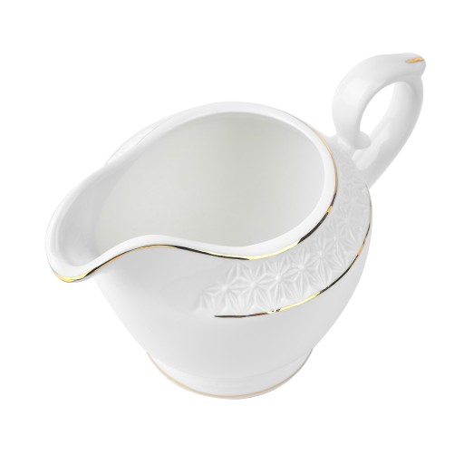 Cukiernica z mlecznikiem z serii Etiuda to propozycja marki Tadar. Naczynia wykonane z porcelany wysokiej jakości. Posiadają charakterystyczne i bardzo efektowne żłobienia oraz modne złote zdobienie. Naczynia pięknie będą prezentować się w zestawie z innymi elementami z tej serii. Cukiernica z mlecznikiem to praktyczny dodatek do zastawy deserowej i elegancki element ozdobny Twojej jadalni.