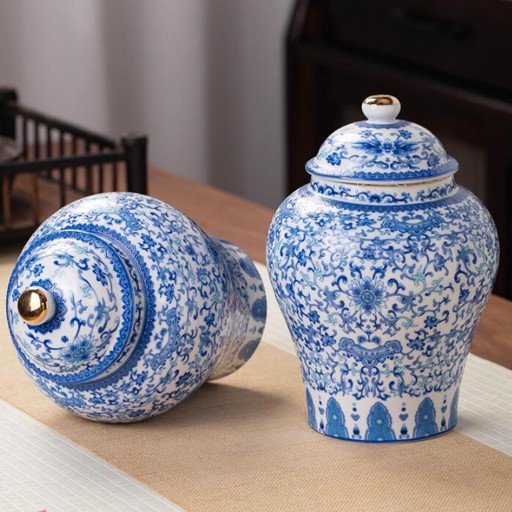 Tradycyjny: klasyczny porcelanowy słoik dekoracyjny, ujście słoika gładkie, a kolorowa glazura znajduje się na zewnątrz i wewnątrz słoika, dzięki czemu dekoracja pokoju wygląda bardziej stylowo i elegancko.
