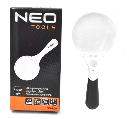 NEO LUPA RĘCZNA SZKŁO POWIĘKSZAJĄCE SOCZEWKA LED 06-129