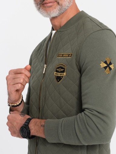 Bluza męska bomberka z naszywkami - V2 oliwkowa B1422 L