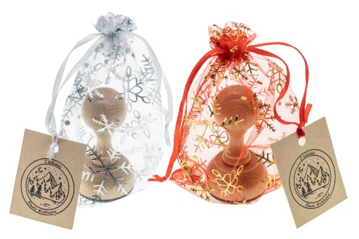 Precyzyjnie wykonana pieczątka EX LIBRIS na kołku drewnianym o średnicy 40mm wraz z biało-srebrnym woreczkiem organzowym