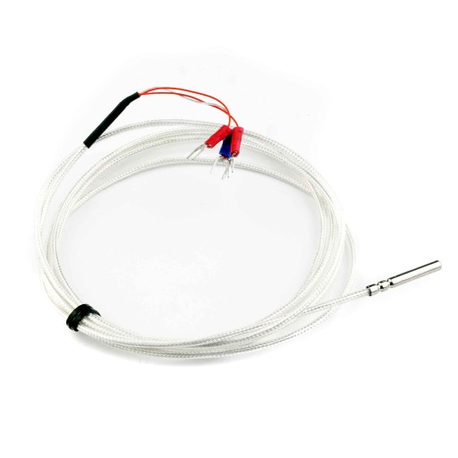 Czujnik posiada 3 przewody w oplocie zakończone widełkami dla wygodnego przykręcenia w kontrolerze temperatury. Czujnik PT100 znajduje zastosowanie wszędzie gdzie potrzeba szybkiego i dokładnego pomiaru temperatury w chłodniach, wędzarkach, instalacjach przemysłowych.