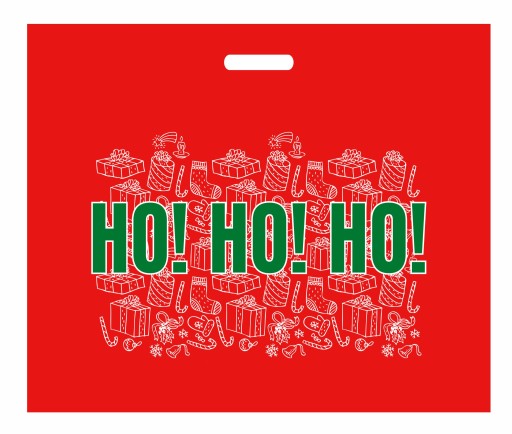 Firma GRALA oferuje czerwoną torbę reklamową, reklamówkę świąteczną, na święta z nadrukiem, z uchwytem tzw. rączką (nerką) wzmocnioną dodatkowo o wklejkę oraz z atestem PZH do kontaktu z żywnością.