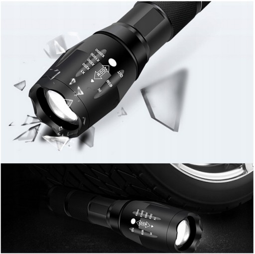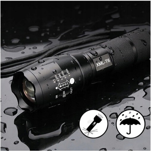 Uniwersalna latarka o siłe światła na poziomie 1000 lumenów oraz zasilaniu akumulatorem Li-ion 18650 o pojemności 3500 mAh, zamiennie cienkimi paluszkami 3x1,5V/AAA. Latarka wyposażona w bardzo wydają diodę Cree XML-T6, co pozwala na uzyskanie większej ilości światła przy zachowaniu długich czasów świecenia. Latarka posiada 5 trybów pracy: 100%, 50%, 25%, migający i SOS, soczewkę generującą równomierny strumień światła oraz możliwość płynnej regulacji skupienia wiązki światła. Obudowa latarki wykonana metodą obróbki CNC z aeroaluminium 6063. Powierzchnia poddana odpornemy na zużycie procesowi utleniana anodowego.