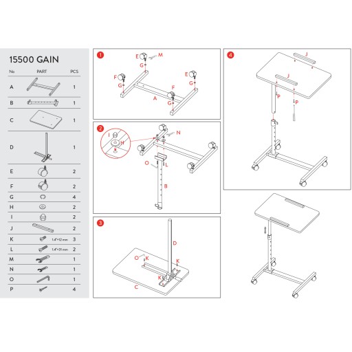 Tatkraft Gain стабильный, мобильный стол для ноутбука на 4-х колесах