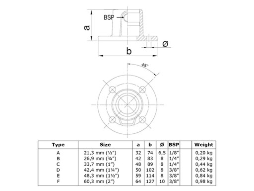 Настенный соединитель 6/4" для труб диаметром 48,3 мм.