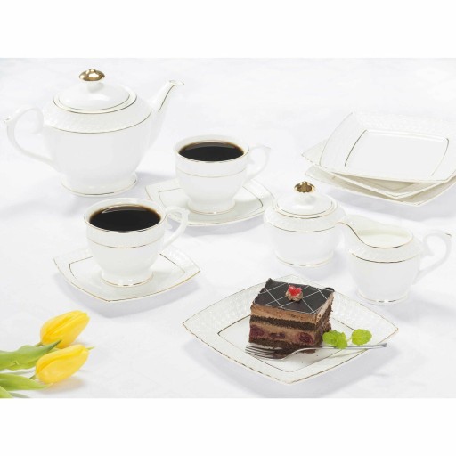 Dopracowany projekt nadający dzbankowi prestiżowego wyglądu. Wyprodukowany z białej porcelany New Bone China z tłoczonym motywem oraz ozdobiony złotymi paskami. Budowa dzbanka pozwala na wygodne przenoszenie oraz wolne uwalnianie aromatu herbaty, a więc także stworzenie przytulnej atmosfery pachnącej tak, jak najbardziej lubisz. Dzbanek oferowany w zestawie z dopasowaną pokrywką porcelanową (pozłacane wykończenie uchwytu).