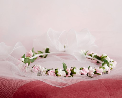 Wianek komunijny piankowych różyczek.
