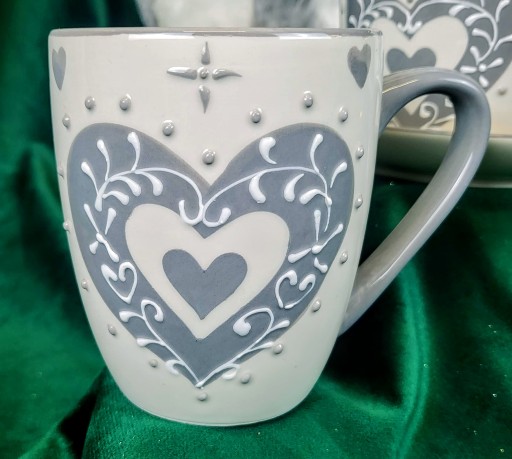 Sympatyczny ceramiczny kubek z sercem.