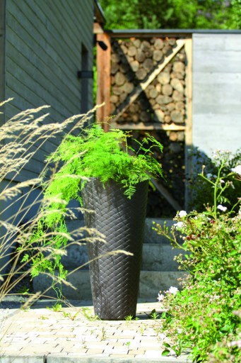 Doniczki z kolekcji Matuba o fakturze wiernie imitującej plecionkę z naturalnego rattanu..