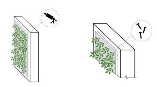 Rekomendujemy montowanie paneli we wnęce lub 5 cm ramie, tak aby zasłonić jego podstawę. Istnieje również możliwość zabudowania boków roślinnością. Jest to usługa dodatkowo płatna.