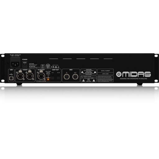 - 16 wielokrotnie nagradzanych przedwzmacniaczy mikrofonowych MIDAS z włączanym zasilaniem Phantom 48V