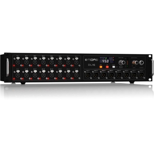Midas DL16 to profesjonalny stagebox z 16 wejściami, 8 wyjściami, 16 przedwzmacniaczami mikrofonowymi Midas oraz interfejsami dla ULTRANET i ADAT.