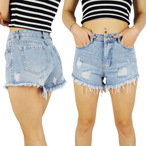 Szorty wykonane z wysokiej jakości bawełny. Model posiada przetarcia i dziury, oraz poszarpana co sprawia że jest oryginalny i inny niż typowe klasyczne spodenki. Idealnie sprawdzi się w połączeniu ze szpilkami, dzięki swojej uniwersalności, pasują niemal do każdej stylizacji. Niezwykle oryginalna, kobieca i stylowa.