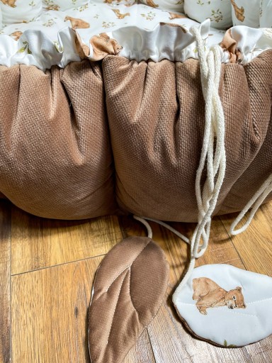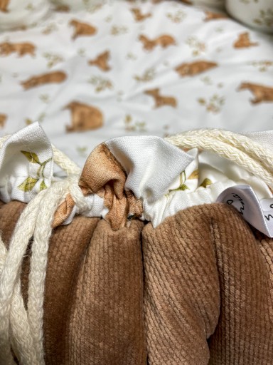 Po rozwiązaniu sznureczka kojec zamienia się w matę o średnicy 140 cm.