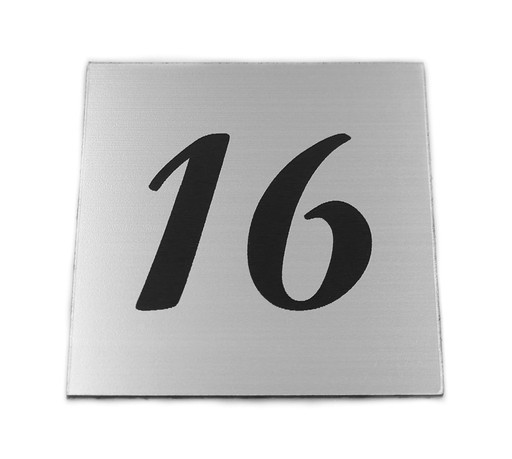 Numerek wykonujemy techniką grawerowania laserowego na wysokiej jakości laminacie grawerskim o grubości 1,6 mm