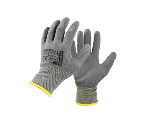 Rękawice ochronne wykonane z poliestru, powlekane poliuretanem. Zakończone ściągaczem. Zapewniają manualność oraz doskonałe czucie trzymanego przedmiotu. Wykazują bardzo dużą elastyczność oraz świetnie dopasowują się do dłoni. Idealne do prac gdzie wymagana jest precyzja.