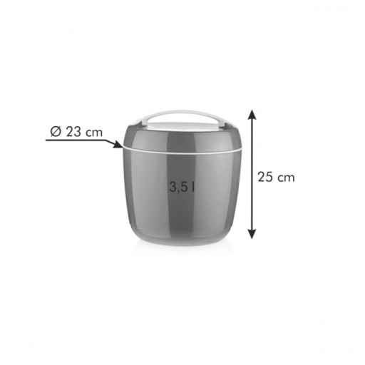 Doskonały do długoterminowego przechowywania i przenoszenia ciepłych i zimnych potraw. Podwójne ścianki pojemnika z bardzo skuteczną izolacją termiczną zachowają potrawy ciepłe lub zimne przez kilka godzin. Termobox podczas codziennego użytkowania nie rozbije się. Posiada wyjmowany pojemnik 1.0 l do oddzielnego przechowywania potraw, dodatków itp.