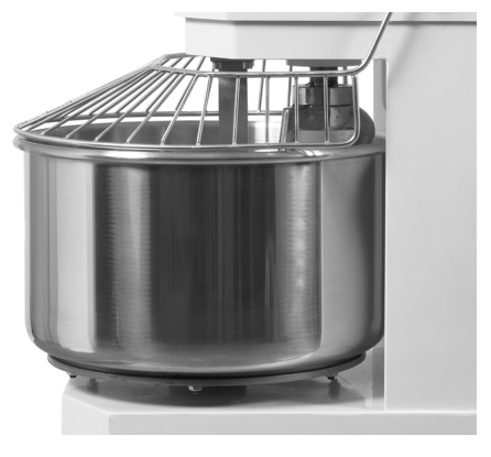 Osłona ochronna ze stali nierdzewnej zabezpiecza przed przypadkowym włożeniem rąk lub jakichkolwiek przedmiotów do dzieży podczas pracy. Natomiast otwory wsypowe umożliwiają dodawanie poszczególnych składników podczas wyrabiania ciasta.