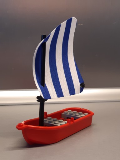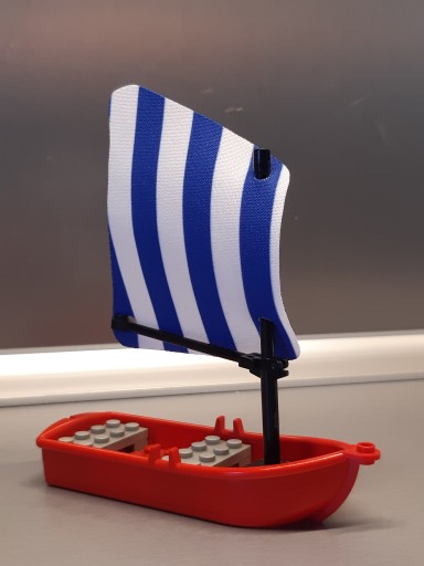 W przesyłanych klientom żaglach układ pasów( kolorowe / białe ) może być inny niż ten na zdjęciach - wynika to z faktu wycinania z nadrukowanego wcześniej arkuszu tkaniny. Jest to zgodne z oryginalnymi żaglami LEGO !