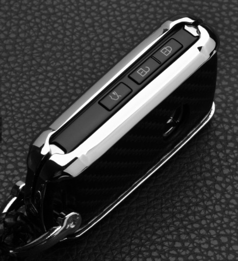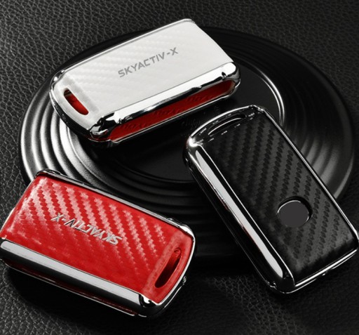 W ofercie nowy pokroweic, eleganckie, wysokiej jakości metalowe chromowane etui z czarnymi skórzanymi dododatkami imitującymi carbon do wersji klucza SMART keyless do modeli MAZDA 2/3/4-przyciski wraz z karabińczykiem: