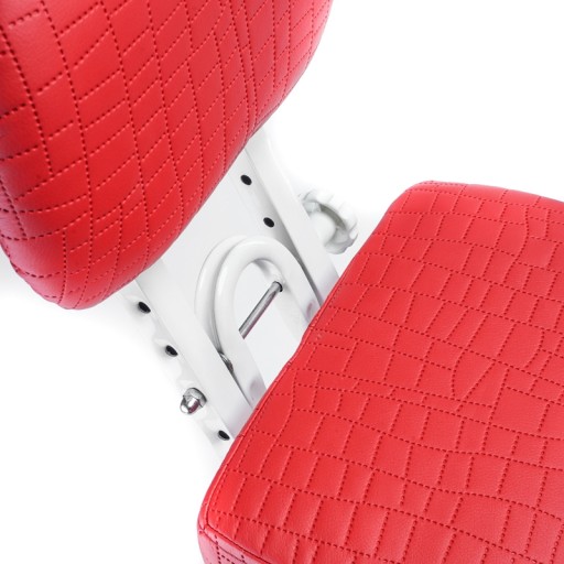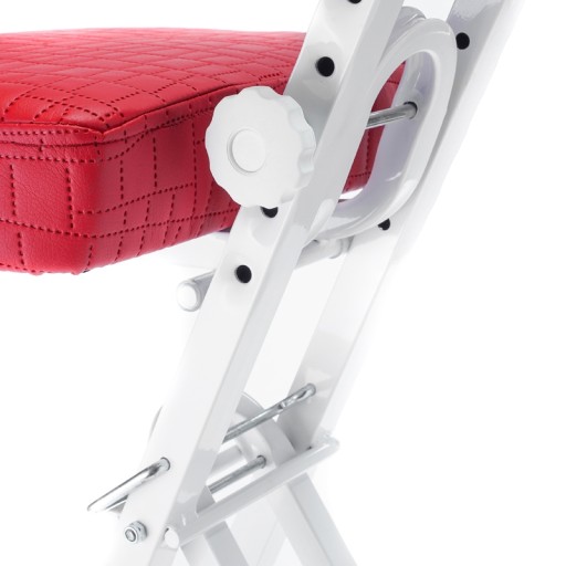 Podnóżek i siedzisko mają 5 stopniową regulację wysokości, co umożliwia wygodne i stabilne siedzenie osobom o różnym wzroście. Hoker posiada oparcie z płynną regulacją wysokości oraz kontem nachylenia.