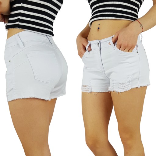 Białe Szorty wykonane z wysokiej jakości bawełny. Model posiada przetarcia i dziury, oraz poszarpania co sprawia że jest oryginalny i inny niż typowe klasyczne spodenki. Idealnie sprawdzi się w połączeniu ze szpilkami, dzięki swojej uniwersalności, pasują niemal do każdej stylizacji. Niezwykle oryginalna, kobieca i stylowa.
