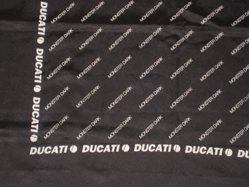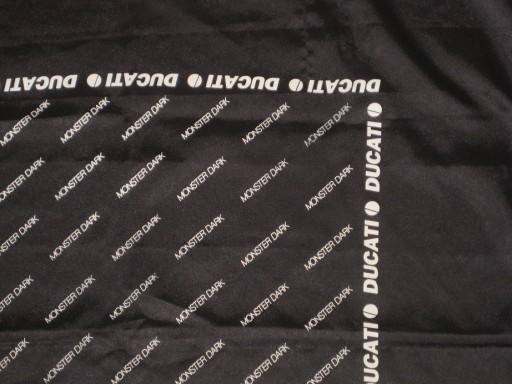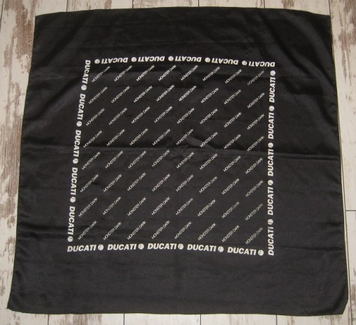 Promocyjna chustka - Ducati Monster Dark. Wymiary: 71 x 69 cm. Używana. Stan jak na zdjęciach - przetarcia na nadruku. Z Włoch. Cena za 1 szt.