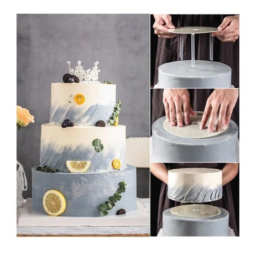 Specjalnie opracowana podkładka wraz z zestawem wsporników do tortów wielowarstwowych i w stylu angielskim.