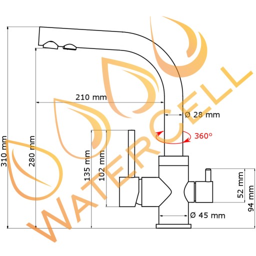 Nowoczesna, elegancka dwufunkcyjna bateria trójdrożna dwuobwodowa WaterCell™ Mera posiada oprócz tradycyjnego podłączenia wody ciepłej i zimnej z sieci, dodatkowe trzecie podłączenie do wody filtrowanej z filtra do wody. Ta dodatkowa funkcjonalność pozwala cieszyć się czystą i smaczną wodą prosto z kranu bez konieczności instalowania dodatkowej, drugiej wylewki samego filtra do wody.