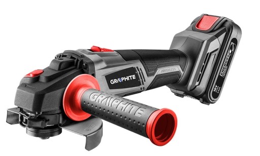 Szlifierka kątowa GRAPHITE, współpracująca z akumulatorami 18V Li-Ion GRAPHITE Energy+. Przystosowana do pracy z tarczami o średnicy 125 mm, osiąga prędkość 10000 obrotów na minutę. Szlifierkę wyposażono w dwuelementowy przycisk włącznika oraz w przycisk blokady wrzeciona chroniący użytkownika przed przypadkowym załączeniem blokady podczas pracy. Konstrukcja elektronarzędzia odznacza się wysoką ergonomią - przewężona część chwytowa została pokryta antypoślizgowym tworzywem, dzięki czemu szlifierka pewnie leży w dłoni. Dzięki płaskiej obudowie przekładni urządzeniem można pracować także w trudno dostępnych miejscach.