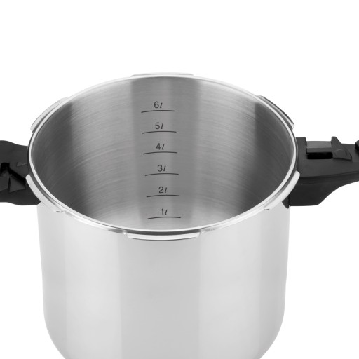 Garnek z wewnetrznej strony jest wyposażony w praktyczną miarkę oraz wytrzymałą rękojeść, która doskonale leży w dłoni. Z szybkowarem BIO EXCLUSIVE+ możesz liczyć na najwyższą jakość, którą zyskasz w bardzo przystępnej cenie.