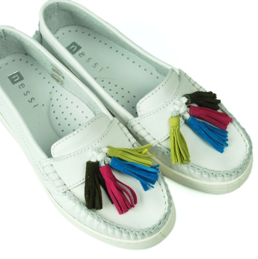 Wygodna, miękka, biała podeszwa grubości ok. 2 cm przód, ok. 3 cm tył.
