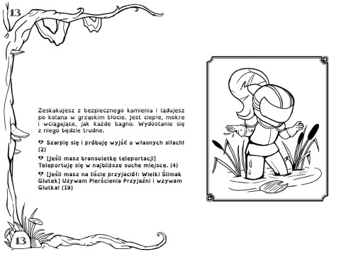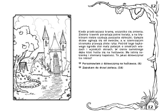 - Przebieg gry. Przeczytaj paragraf, a potem zobacz, jakie opcje są do wyboru. Wybierz odpowiedź i przejdź do punktu, który wskazuje tekst (numery punktów znajdziesz w narożnikach stron). Powtarzaj tę czynność, aż ukończysz grę.