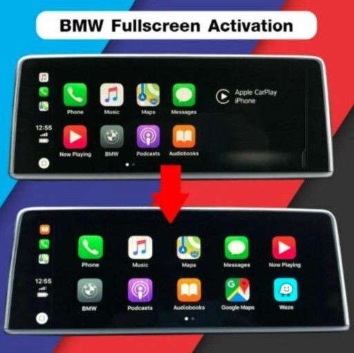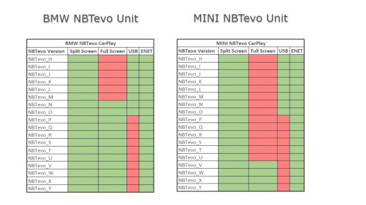 Dla tych co nie chcą oglądać :) W tabelce poniżej widzicie jak i w jednostkach NBT_Evo można aktywować CarPlay oraz w jakim formacie (pełnoekranowe/dzielony ekran - różnica pokazana na zdjęciu poniżej).